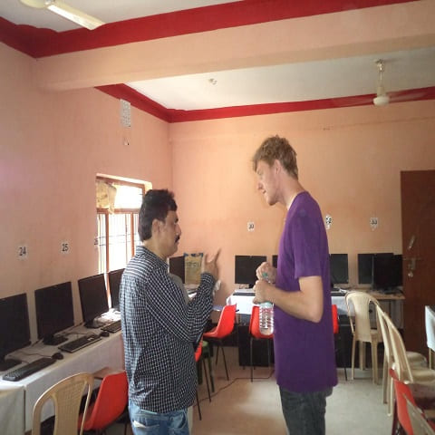 Debasis Chaudhuri is seen with Rune Christopher, Director, ACA Denmark while explaining the use of Computers by the less advantaged students of AVM school run by ARM, Baliapal with funding from SAXO Bank, Denmark through ACA Denmark